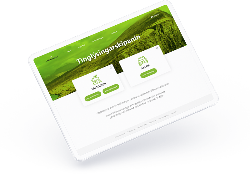 The land registration act system is a web-based administrative system used primarily for central administration of legal land registration acts and the Faroese land cadastre.